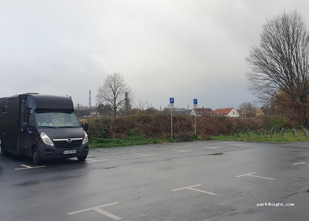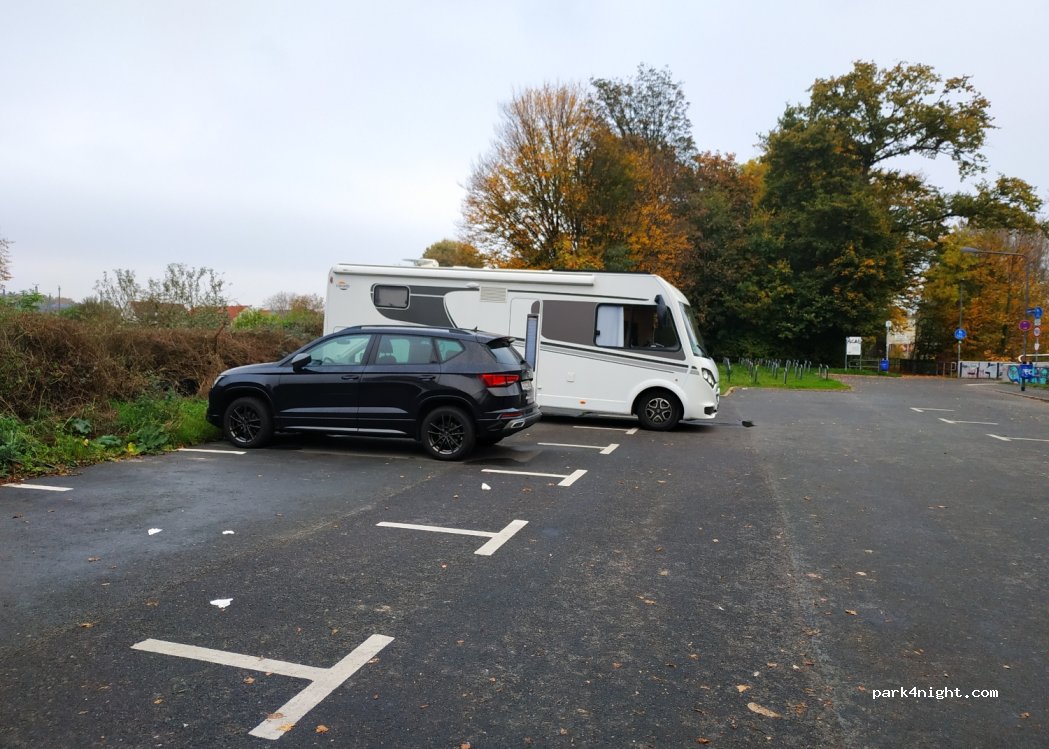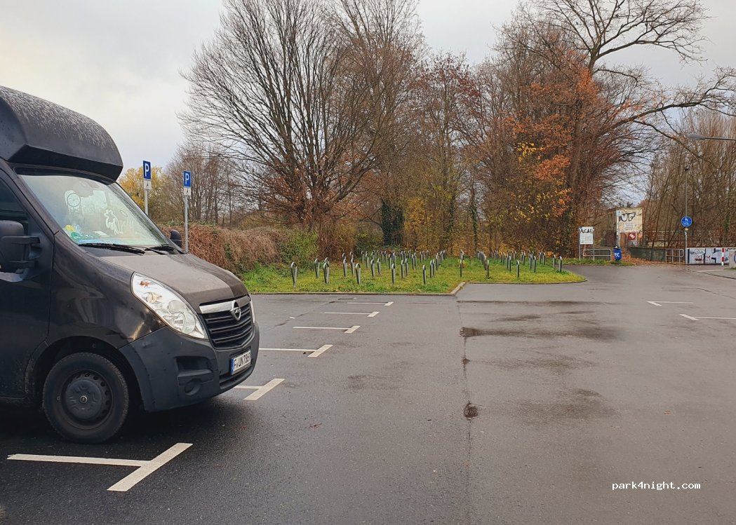 Hinweis von einem Frankfurter: In der Sommersaison nicht ratsam hier mit großen Vans zu parken, da es der Parkplatz für das Freibad nebenan ist und er sehr voll wird. Zugang nur als Einbahnstraße befahrbar, sodass man bei Gegenverkehr alles wieder zurück fahren muss. Im Winter kein Problem