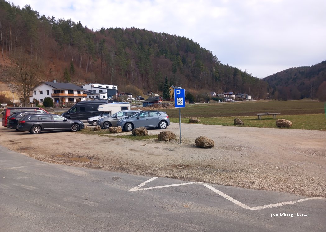 Camping Verbot für Wohnmobile. Hinweis den Stellplatz in 3 km in Gößweinstein zu nutzen. Zur Zeit auch mit Leerrohrrollen für Glasfaserkabel und Baufahrzeugen belegt.