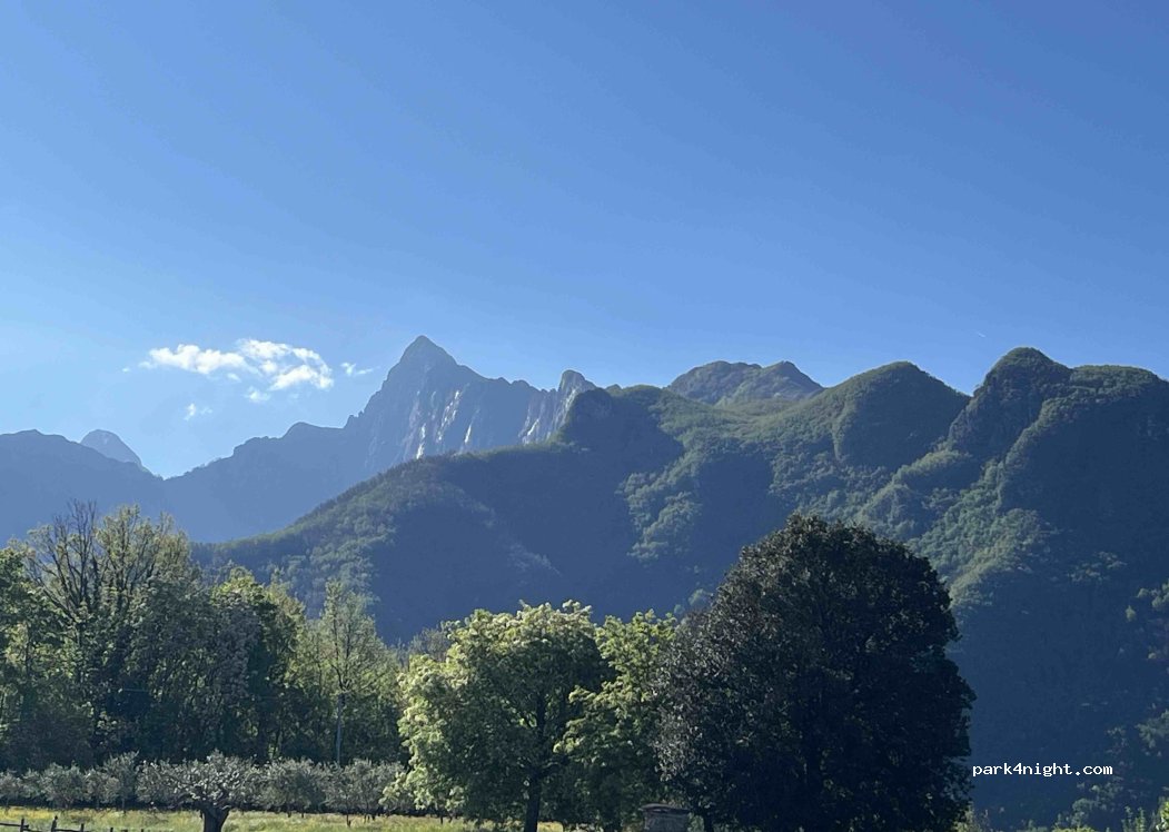 Piazzola per camper nel parcheggio dell'agriturismo "Al Vecchio Tino", con ottima cucina locale. Vista eccezionale sulla valle. Area di carico/scarico grigio/nera con elettricità. Circa 7-10 posti. L'area recintata è chiusa di notte. Molto tranquilla e sicura. Il proprietario è estremamente disponibile e accomodante, pronto ad assistere gli ospiti per qualsiasi domanda. L'accesso avviene tramite una strada piuttosto ripida e tortuosa. Per i conducenti esperti, anche con un camper di 7,5 m, questo è possibile. Il 1° marzo abbiamo pernottato gratuitamente dopo aver mangiato al ristorante. Si prega di contattare sempre il ristorante per i prezzi durante l'alta stagione. È disponibile una piscina estiva a pagamento.