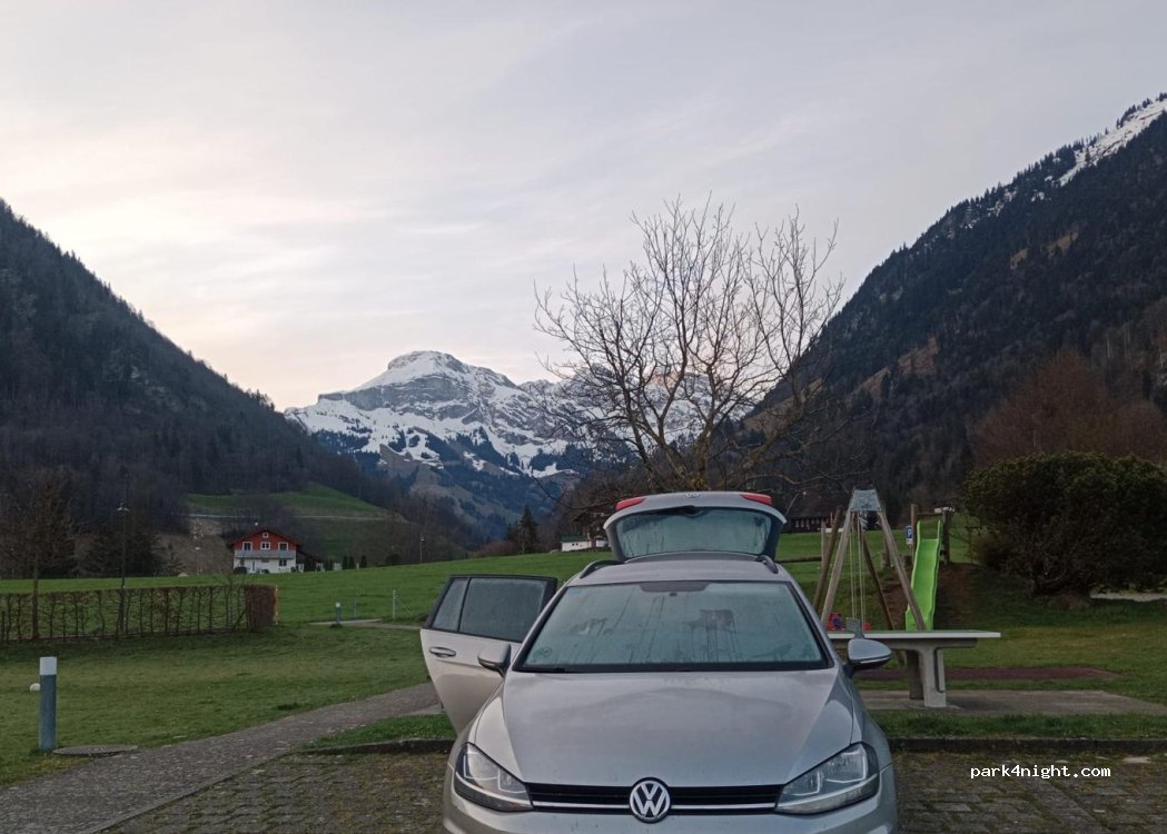 Increíble parking en un pueblito de montaña cerca de Sarnen. Hay varias parcelas, y varios parkings diferentes. Pero el mejor es el que se encuentra al lado del campo de fútbol y zona de juego para niños. Hay unos baños públicos en muy buen estado a unos 2-3 minutos, desconozco el horario pero en abril a las 21:30 estaban abiertos.