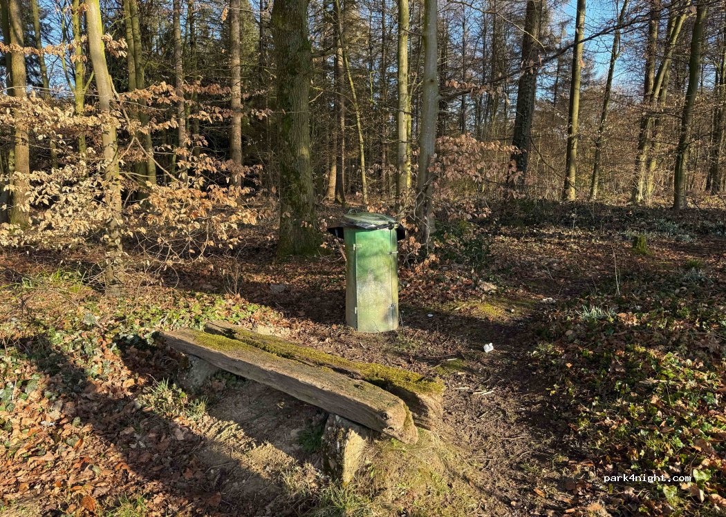 Quiet and peaceful spot, perfect overnight stay. Stayed the night and remained during the day—very calm both times. No cars on the nearby main road after 10pm. During the day only occasional vehicles passing by (tractor) on the forest track. Large bin available. Slight 5G reception (one bar, Telekom). Recommend parking along the paved section diagonally, especially if staying through the day.