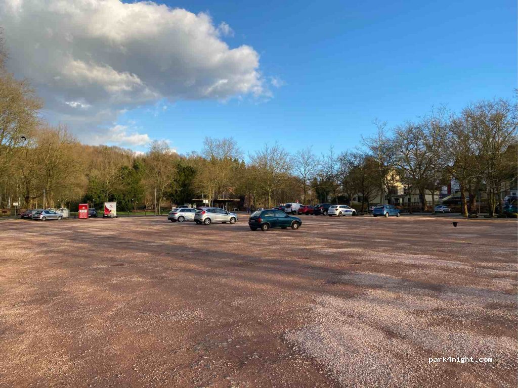 The parking lot directly at the Illinger Burg has no height limit. It is also open all year round. Only at the castle and pond festival, as well as the fair and the medieval market, the place is closed. There is a playground, a restaurant and a café in the immediate vicinity. It is within walking distance in about 5 minutes. to reach a bakery, ice cream parlor, butcher, supermarket etc. The square is partially illuminated. The ground is gravel as well as composite stones. On Fridays there is a small weekly market which takes up a bit of space. However, the space for the weekly market is signposted. Otherwise the place is very quiet.