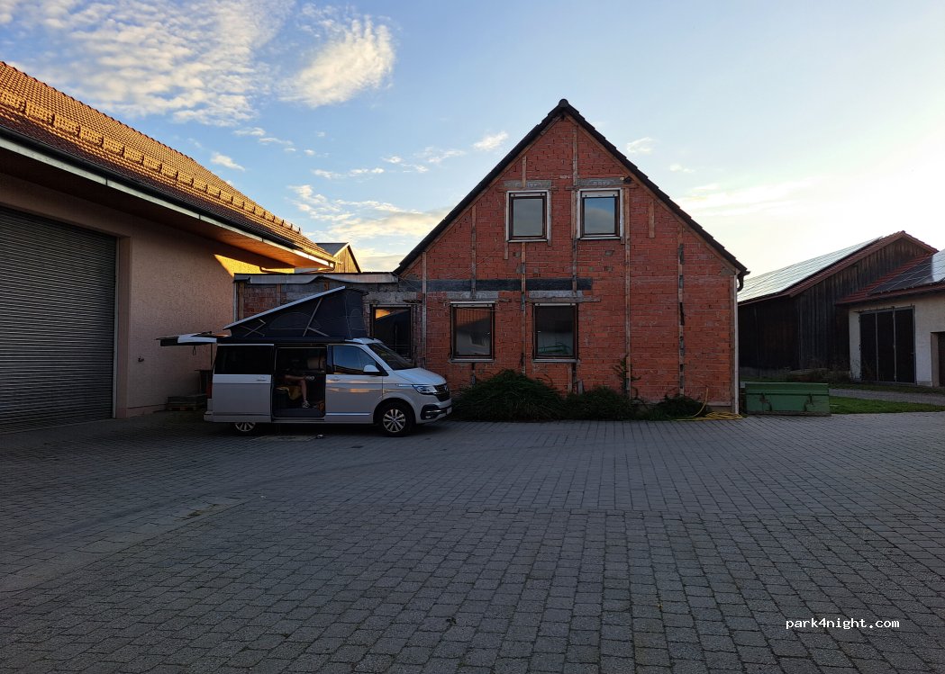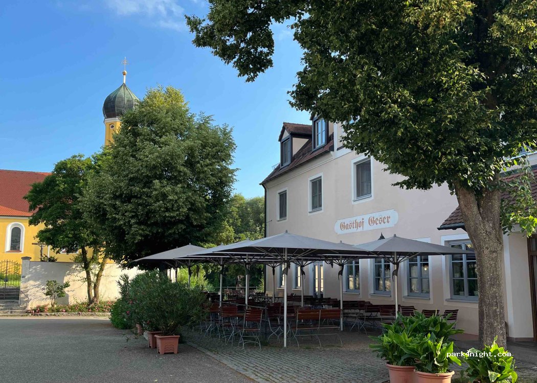 Stellplatz im Hof vom Gasthof auf Anfrage beim Wirt. Schöner Gasthof mit Gartenwirtschaft und sehr gutem regionalen Essen. Sehr freundliche Bedienung. Für eine Übernachtung sehr zu empfehlen. Danke an die Gastgeber .