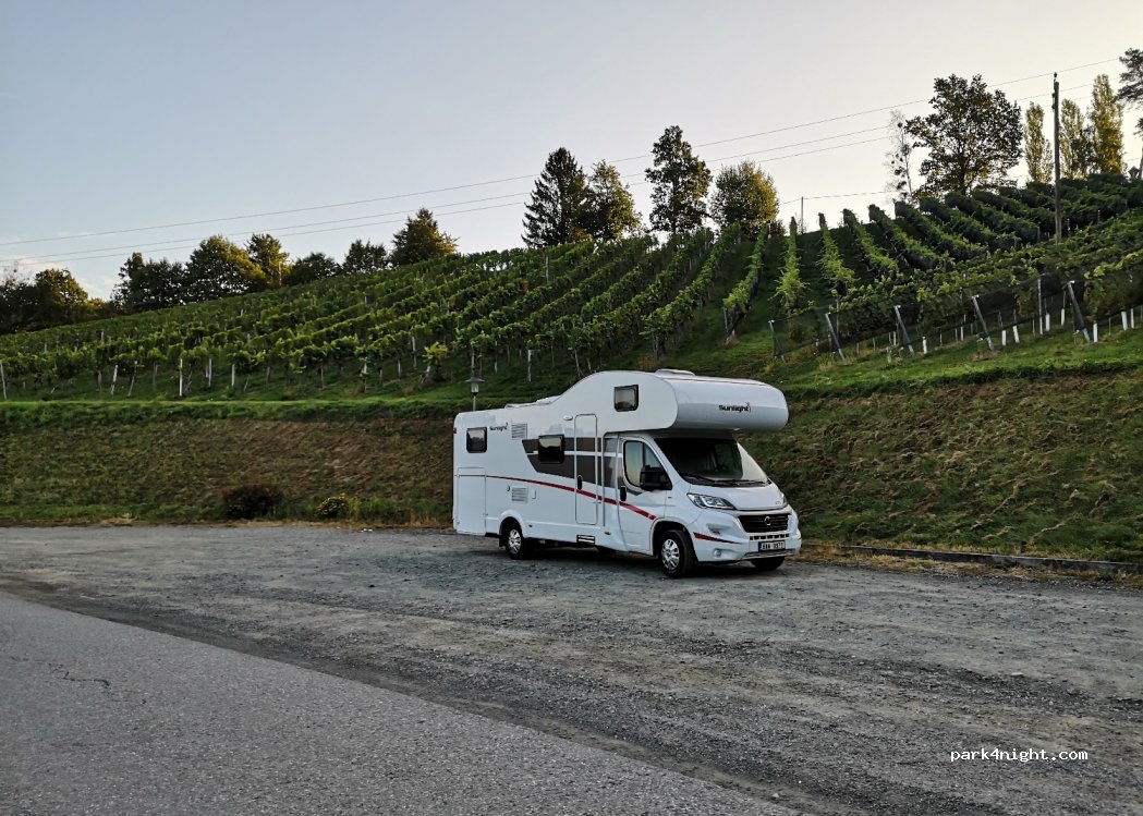 Parking public en dessous des plus grandes toilettes du monde. Largement plat sur des graviers bien pavés. 3 minutes à pied de Gasthaus Sausalerhof, 7 minutes à pied de Buschenschank Felberjörgel Bien que directement dans la rue, généralement très calme, seulement plus fréquenté pendant la saison des tempêtes et des châtaigniers.