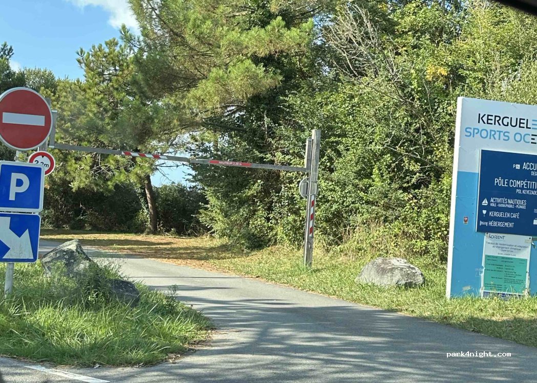 Parking du centre nautique de Kerguelen, site tranquille, à proximité de la mer., toilettes entre le pôle compétition et la plage