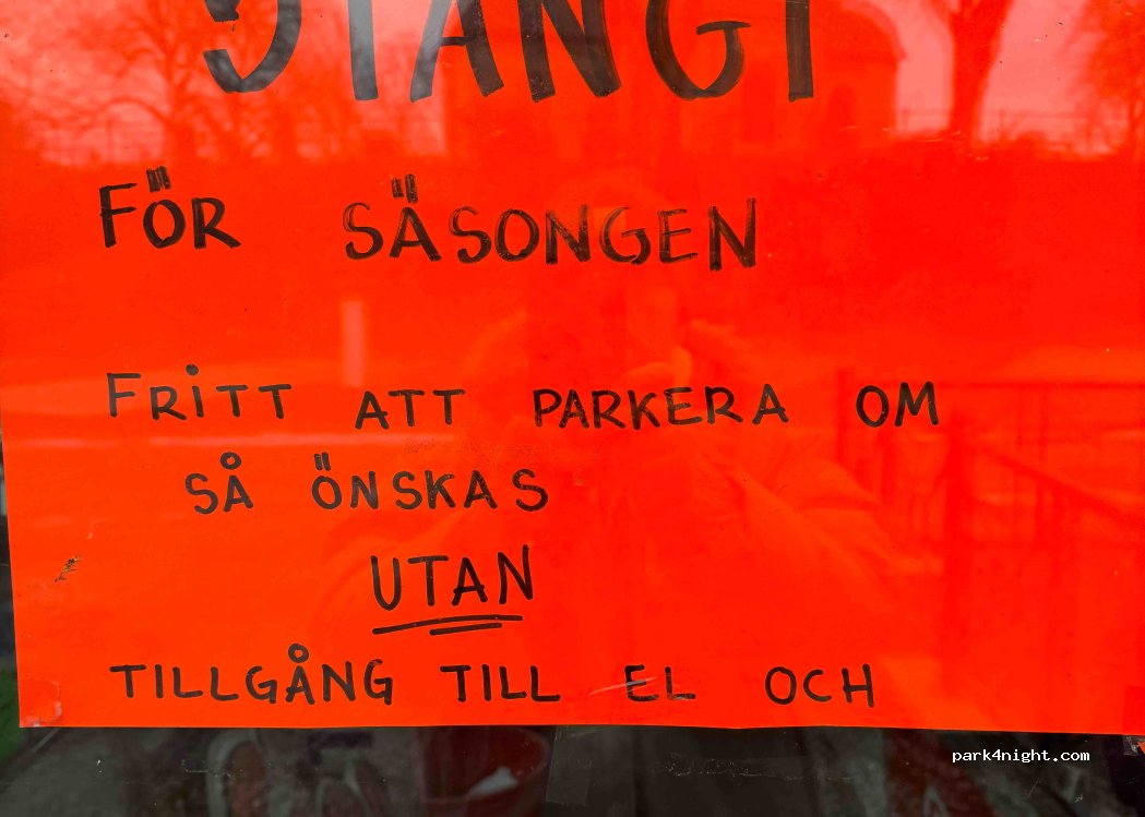 Vi hade planerat en natt i Askersund. Det står att den är öppen året runt. Men det är inte helt sant. Ställplatsen var öppen men stängd. Bommen är öppen och man får gärna parkera där men utan tillgång till el eller service. Besvikna reste vi vidare.