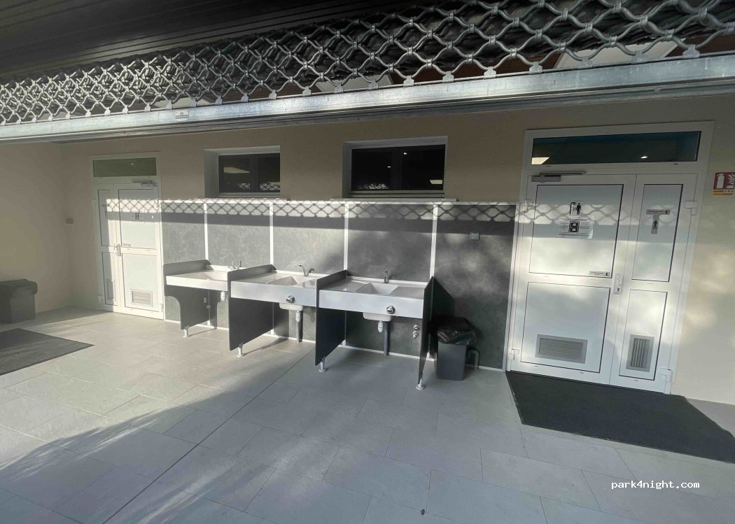Schöner ruhiger Stellplatz mit allem was das Herz begehrt. Sanitäranlagen etwas in die Jahre gekommen, aber sauber und ordentlich. Lediglich eine Waschmaschine und Trockner gibt es nicht, wie angegeben. Nur Waschbecken für Handwäsche.