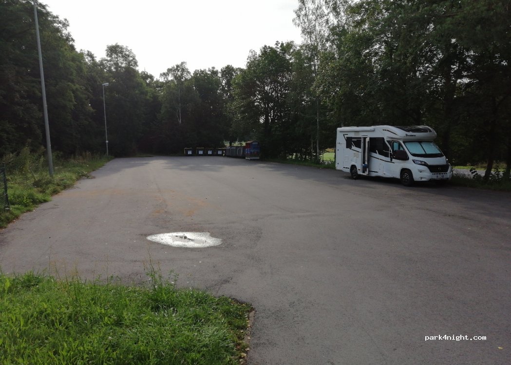 Parking at the tennis club Breitengüßbach. There are used glass and old clothes containers on the site