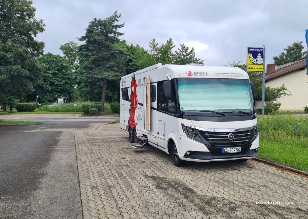 Parkplatz liegt an einer Mehrzweckhalle einer Gemeinde und hat sehr viele Stellplätze, sehr ruhig gelegen und hat direkt nebenan eine Autowerkstatt. Liegt neben einem Friedhof 100m vom Waldrand entfernt.