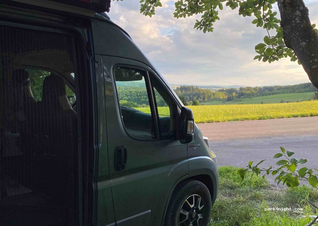 Schöner Parkplatz, in eine Richtung leicht abfallen mit Glück gibts aber einige recht flache Stellen. Ideal wenn man auch mal mit zwei Vans untergesetzt ist.