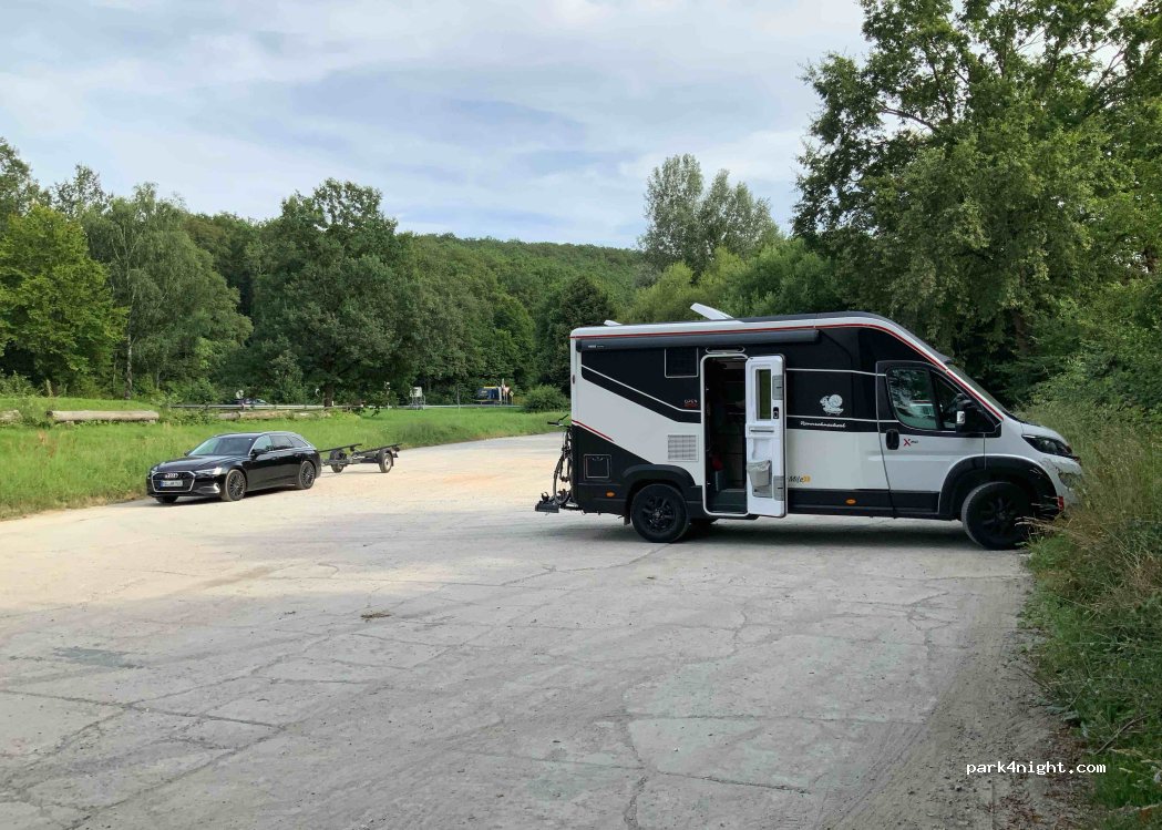 Small parking lot directly on the Main, which is unfortunately also directly on the country road on which there is very little traffic at night. Popular local fishing spot.