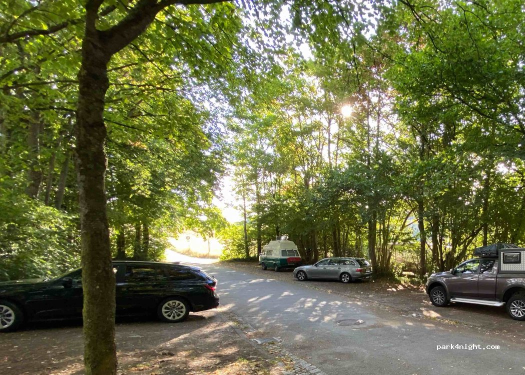 Schöner ebener Platz. Anfahrt auch für längere Fahrzeuge, die den Odenwald entdecken wollen, möglich - wir waren mit 7,5m hier. Aussicht aufs Tal, Bank und Mülleimer vorhanden. Gelegentlich Verkehr über die Landstraße, aber nachts ruhig.