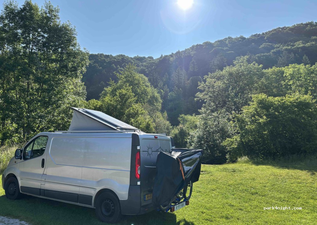 Mooie groene omgeving, goed gras en erg opgeruimd. Wij stonden hier voor 1 nacht samen met nog twee andere passanten. Heerlijk langs het beekje naast de stuw, in de camper hoorde je het water. De weg hoor je ook een beetje maar verder vonden wij het een top plek! Wc indd aanwezig, niet gebruikt. Plekje ook makkelijk te vinden trouwens! Veel plezier