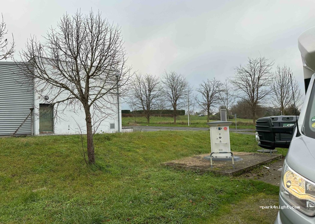 Un grand parking avec ce qu’il nous faut. Que demander de plus. L’aire de vidange est un peu défoncée (voir photo)