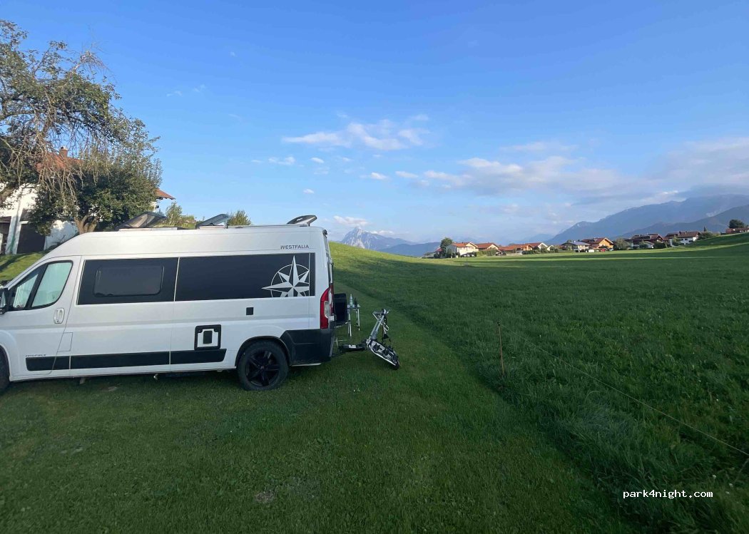 Amazing view. The owner is super friendly and helpful. Our motorhome got stuck in the mud and it helped us with his tractor. Even if we don’t speak German, we were able to communicate easily since the owner speaks perfect English. Highly recommended spot to stay the night.
