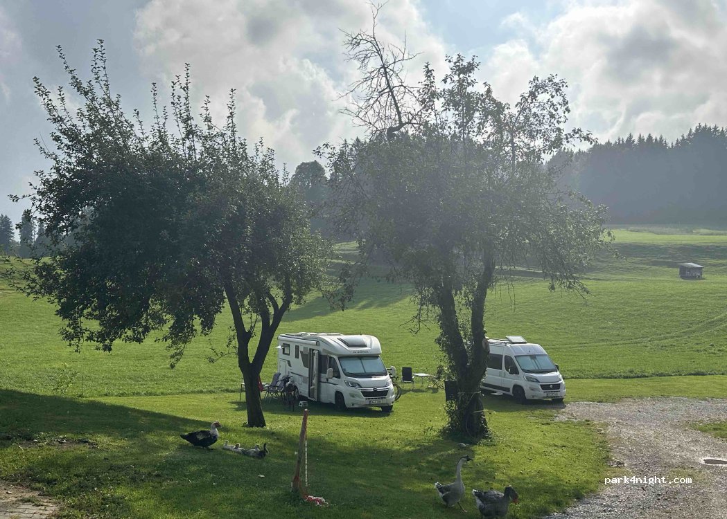 Danke Markus für die tolle Übernachtungsmöglichkeit. Lange nicht mehr so schön gestanden. Käserei und Bäckerei nur 3 min zu Fuß entfernt. Blick auf die Alpen, Kühe, Gänse, Hühner als direkte Nachbarn. Einfach toll. Wir kommen gerne wieder.
