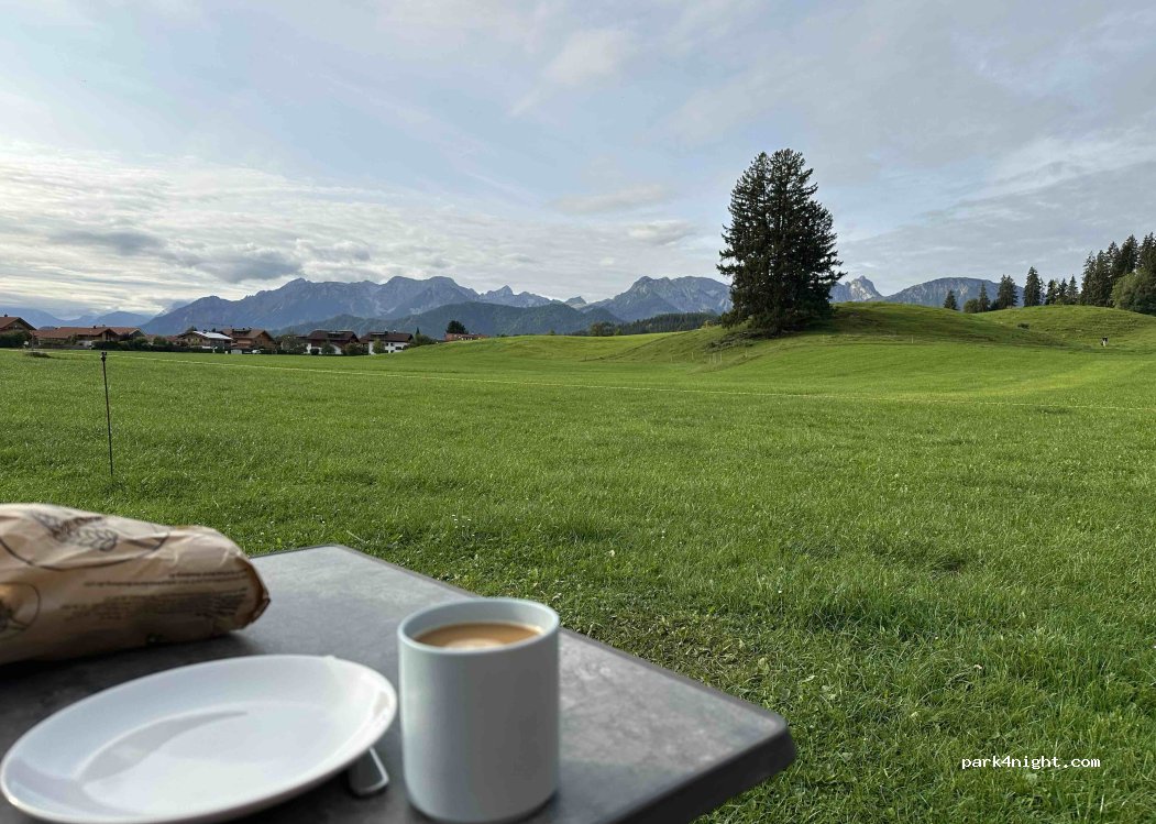 Ein sehr netter und herzlicher Empfang, direkt auch mit nem Bierchen. Aussicht ist traumhaft schön, und man hat seine Ruhe. Man kann hier auch seine Wassertanks auffüllen und man hat Zugang zum Strom. Bei der nächsten Tour durchs Allgäu würden wir wieder kommen