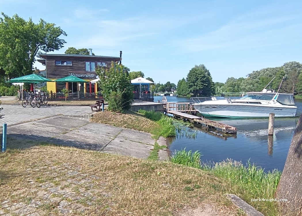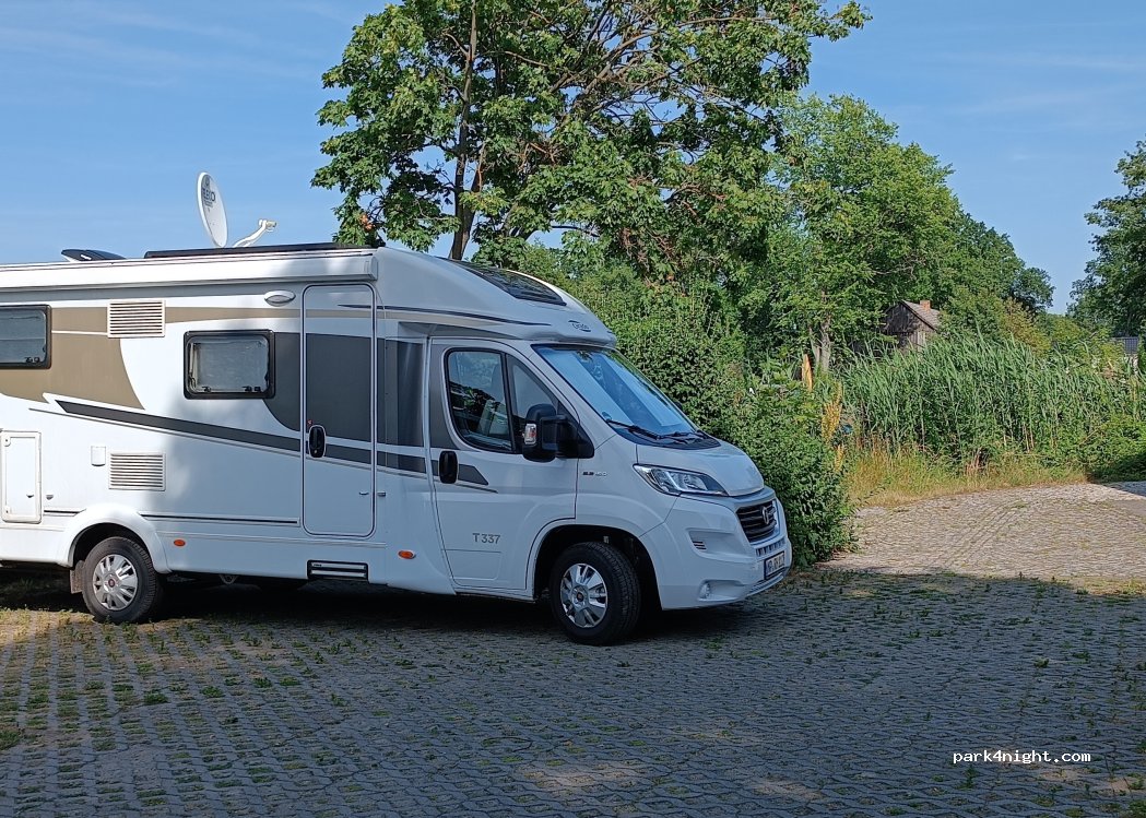 Parking asphalté pour environ 20 voitures au pied du Beeskower Burg. Nous avons pu nous garer ici pour une excursion d'une journée sans limites et visiter le château et l'église. Le petit restaurant "Cocina verde" dans la cour du château est particulièrement recommandé (une délicieuse cuisine végétalienne est également disponible!).