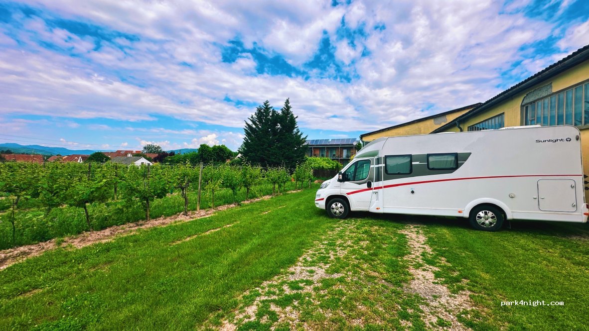 Spent two relaxing nights here, parked next to the vineyard. Electricity availability at no extra cost. They serve great food (which is part of the deal) with some lovely wines in a stunning setting. Perfect to take a morning swim in their natural pool. Fantastic and helpful staff that want you to enjoy your stay. Nice walk or bike ride down to the Danube river.