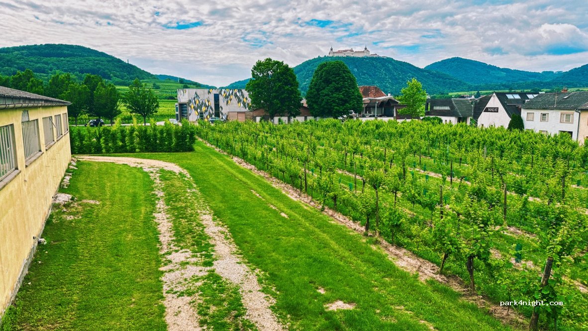Der Stellplatz ist an einem Hotel mit gehobener Gastronomie. Ihr steht am Rande eines Weinfelds. Daneben ist ein Pool bzw. Schwimmteich. Die Sanitäranlagen sind nagelneu und top gepflegt. Das Frühstück im Hotel gehört wie das Abendessen in die Kategorie gehobene Gastronomie. Die Familie Sonnleitner sind einfach fantastische Gastgeber. Vielen Dank für den tollen Abend und das überragende Essen.