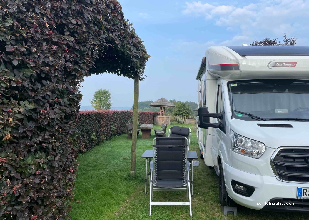 Small private motorhome parking space for 2 mobile homes (one also <8m). Space for a camping table and grill, the garden can be used. "Ski swing", covered seating at the garden hut, great view and new sanitary facilities (WC and SHOWER). Brewery, bakery, groceries, post office and gas station approx. 2 km away. NO CHEMICAL WATER DISPOSAL! Reservations are NOT possible, just come spontaneously. First come, first served:)