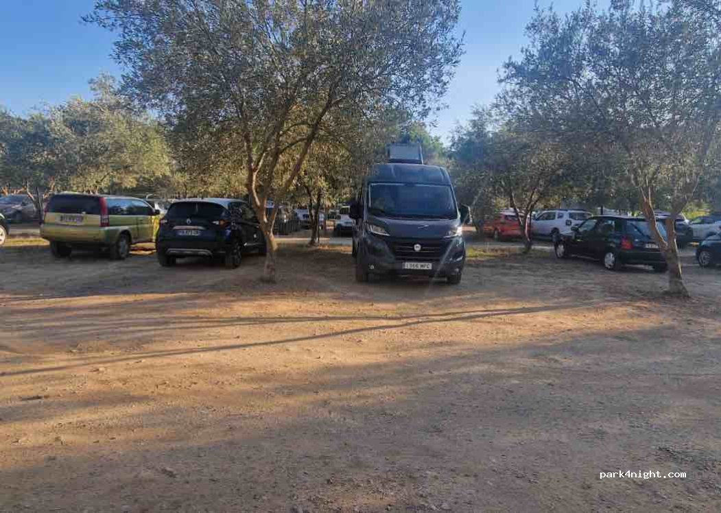 Parking agréable hors saison. Attention l'aire de service pour les vidanges se trouve sur le parking à côté réservé aux voitures. Terrain plat agrémenté d'oliviers au calme...sauf pour le clocher qui sonne toute la nuit.