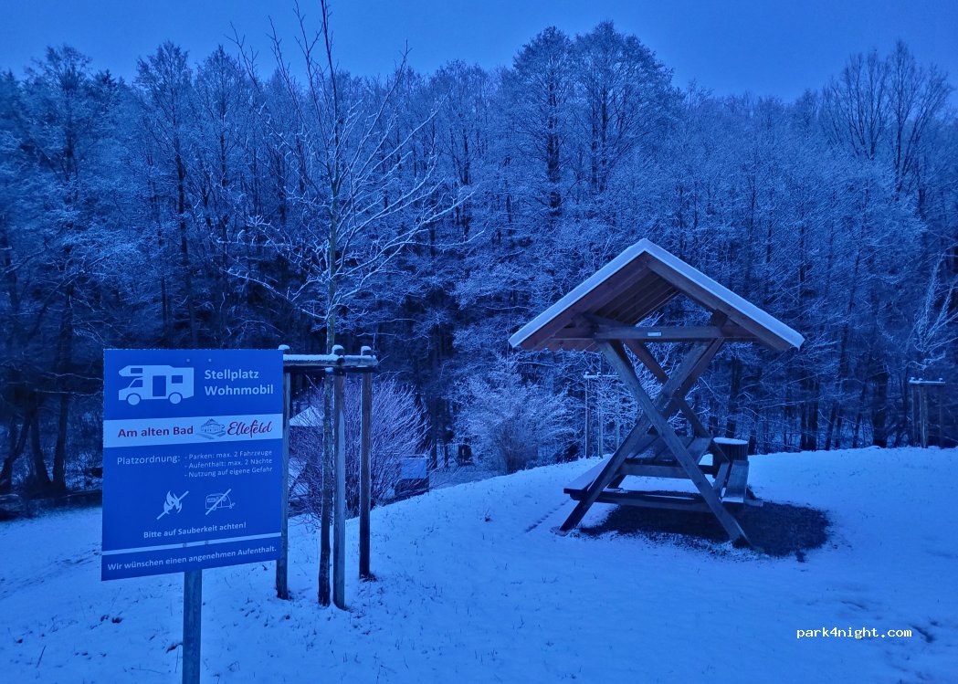 Wir standen hier für eine Nacht. Waren komplett alleine und am Morgen gab es erstmal 5 cm Schnee. Für zwei Wohnmobile für zwei Nächte. Platz wäre für mehr. Großer Kinderspielplatz ist direkt daneben.