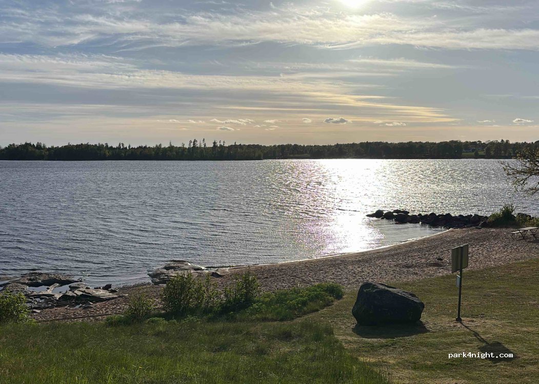 Sehr ruhiger schöner Platz. Man steht unter Bäumen im Schatten direkt am See. Ein kleiner Sandstrand mit Feuerstelle ist auch dabei.