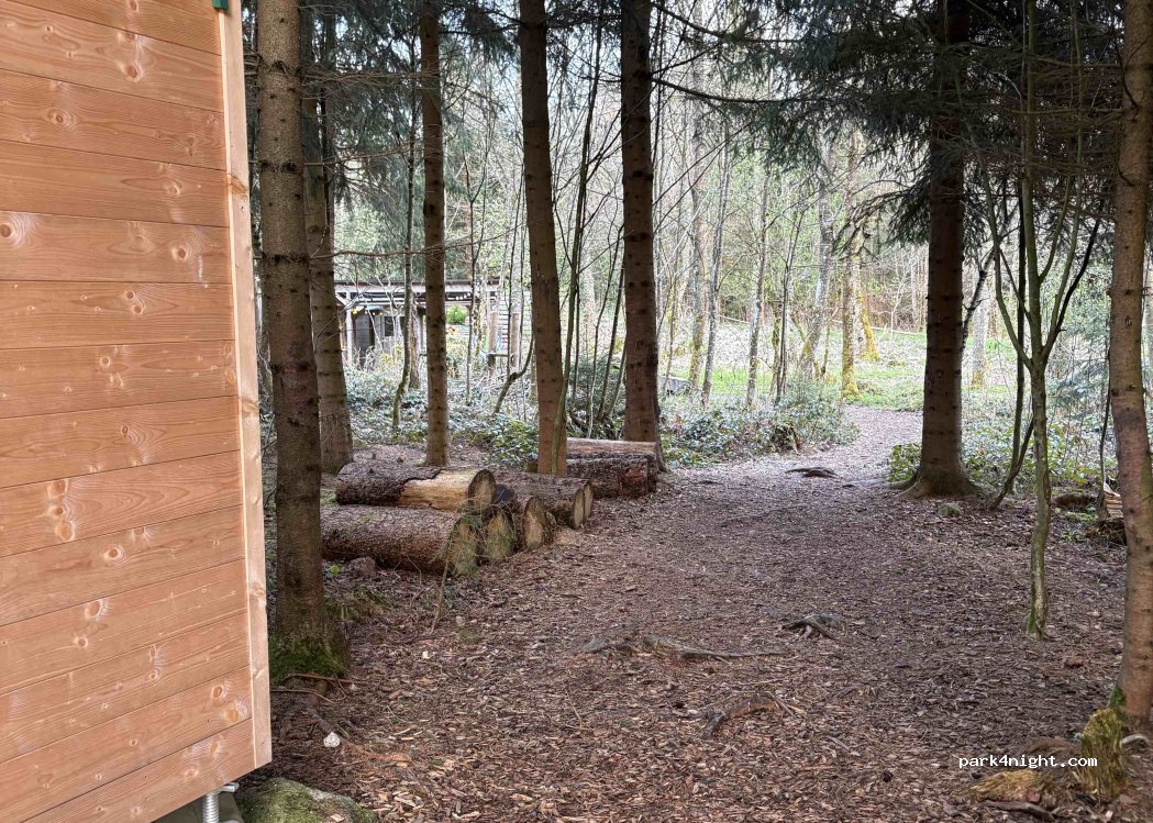 Deze fotogenieke mini-boscamping met ingerichte tipi’s en boomtenten grenst aan een grotere camping. Er is plaats voor wat kleine busjes (grindplaatsjes). Charmante cabin voor check-in + kleine shop. Er een rioolzuiveringsinstallatie vlakbij, geen overlast. Compost toiletten. Douchen op andere camping. Geen elektra. Knus geheel. Psst.. er liggen leuke groene stickers. Tof voor op de camper!