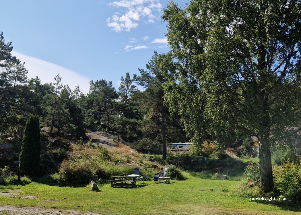 Wir haben hier 3 Nächte verbracht. Sehr schöner Stellplatz mit ausreichend Sanitäranlagen super sauber. Für die Duschen werden 10 Kronen benötigt. Tolle Badebucht und Angelmöglichkeit. Kleine Wanderwege um die Insel mit traumhaften Aussichten. Keine Einkaufsmöglichkeiten. Ruhe pur. Wegen Festival dieses Wochenende geschlossen. Bezahlt wird per Überweisung. Kein Platzwart.