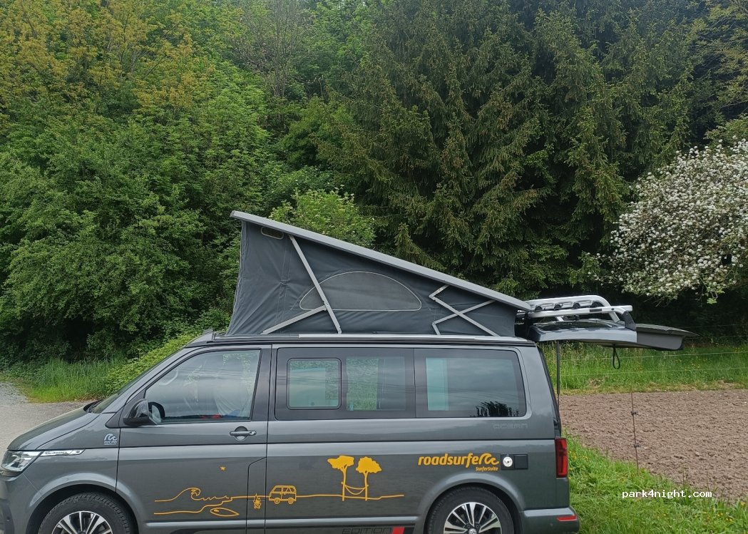 Öffentlicher Parkplatz mit Picknick-Möglichkeit beim Waldspielplatz. Ruhig gelegen, Grillmöglichkeit bei der Hütte. Übernachtung für 1-2 Nächte ist kein Problem.
