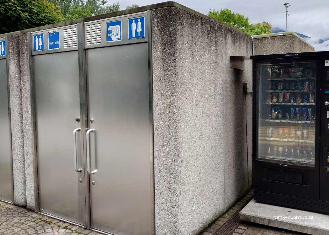 Perfect place to visit capital of Lichtenstein. The barriers were open, so we did not have to pay. We had a good night sleep. The camper service area is just at the end of the parking close to the public toilets. Easy to empty black water and top up water ( with watring can) Gray water disposal difficult.