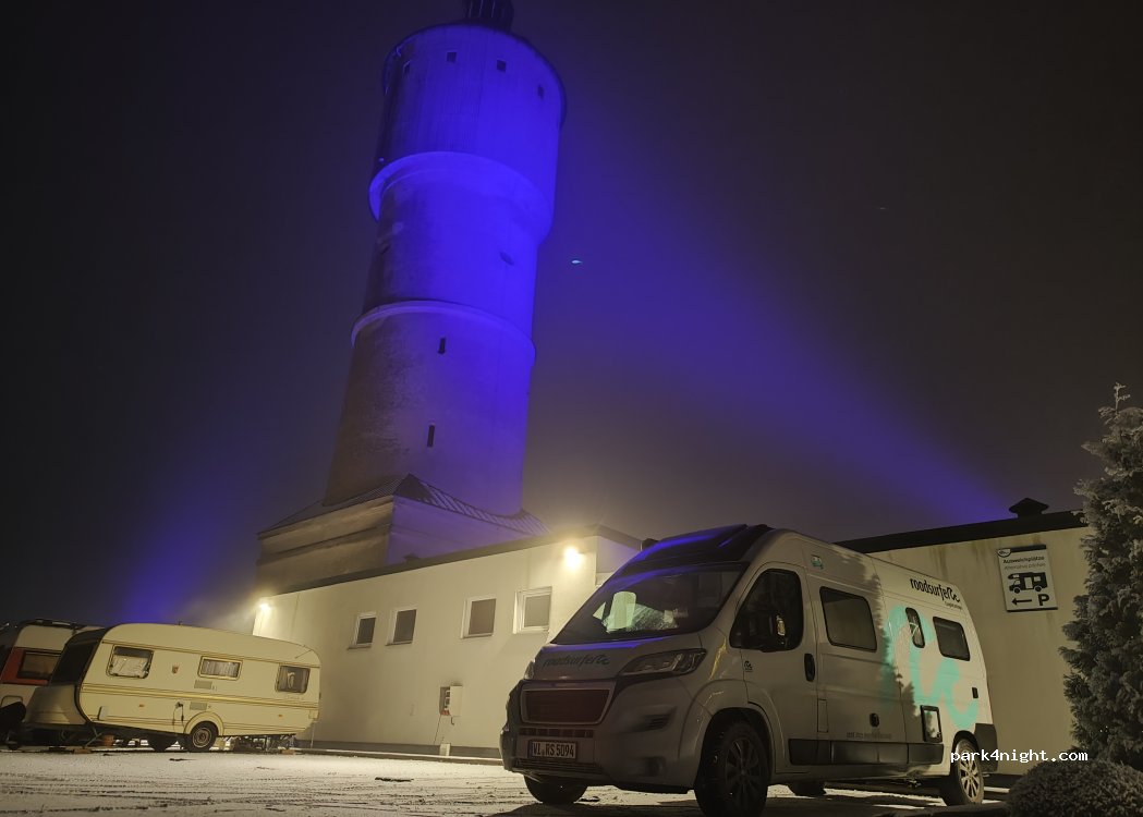 Parking space is in the local area Access is signposted close to the center | calm at night and during the day | 469 m above sea level NN. | Max. Duration of stay: no restriction | Stand space flat | fenced in graveled parceled in camper size area interrupted by lawn | Shadows through trees reserved for motorhomes | no lighting | Depending on the location, satellite reception is limited by trees Danube Cycle Path Ulm-Passau nearby