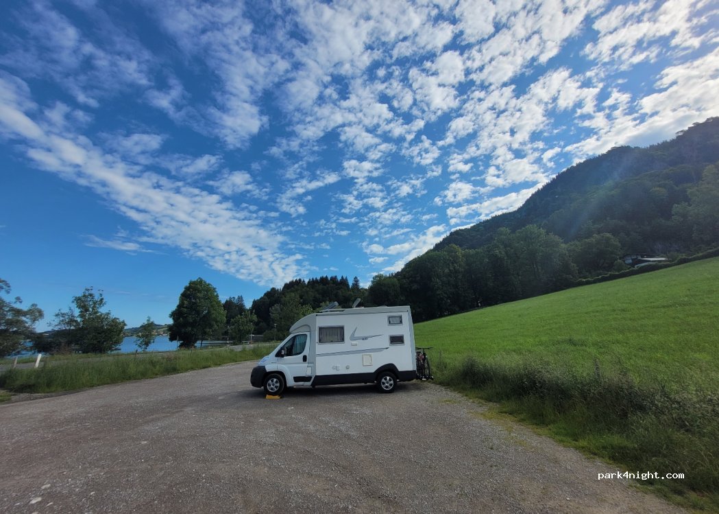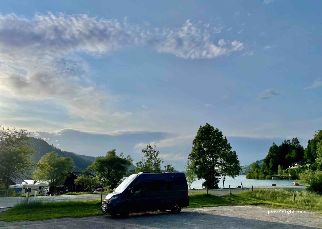 Schöner ebener Parkplatz mit wunderbarem Ausblick auf den See und die Bootshäuser. Tagsüber (besonders am Wochenende) sehr viel los & daher recht laut, Nachts aber total okay - wir konnten gut schlafen. 10€ für die Übernachtung sind auch ok, von hier aus kann man zu zahlreichen Wanderungen starten & die Pizza vom Italiener ums Eck (da Angelo) war super lecker...