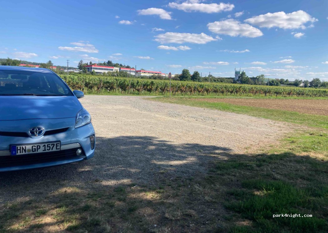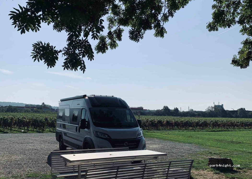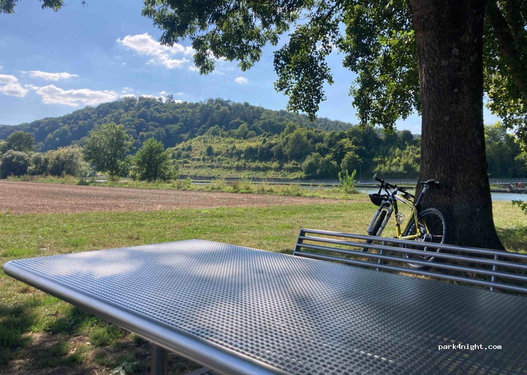 Kleiner Stellplatz für max. 5 Wohnmobile, direkt am Neckar, wenige Fußminuten bis zum Ort. Landstraße in Hörweite, Stellplatz ist kostenlos