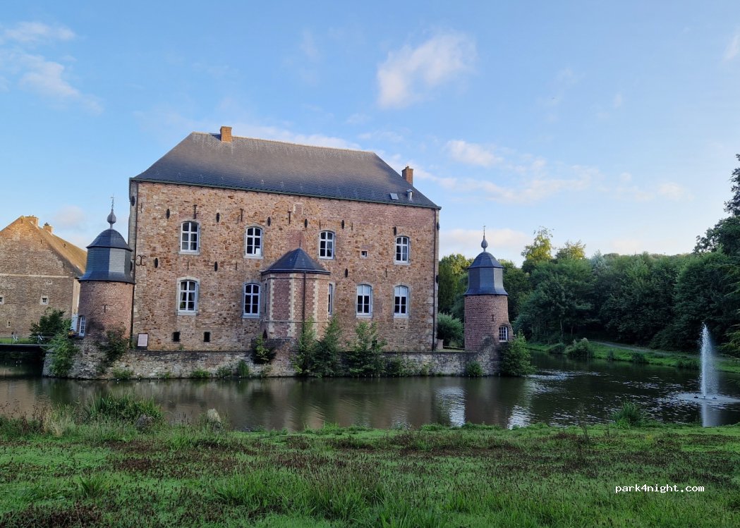 Mooie omgeving aan een viswater en bij een kasteel/restaurant met vriendelijk personeel. De "jeugd" die er in de avond aanwezig was voelden ons niet fijn bij! We zijn in de avond nog naar een andere plek gereden.