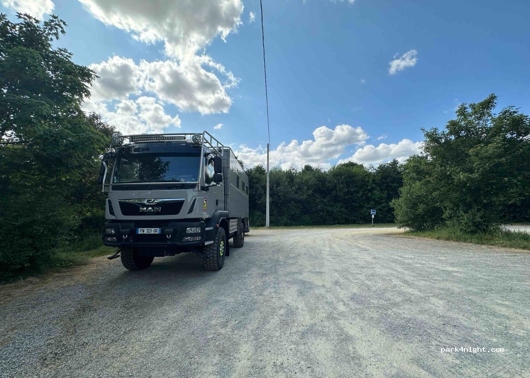 Grand parking au calme. la route à proximité est très passante, mais aucun bruit la nuit. il y a de la place, c’est très propre. il manque des poubelles et des WC.
