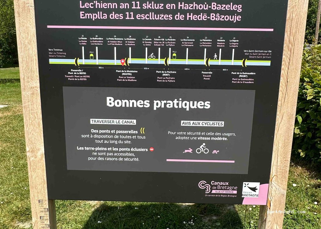 Situé aux onze écluses à Hédé près de Tinteniac, grand parking tranquille