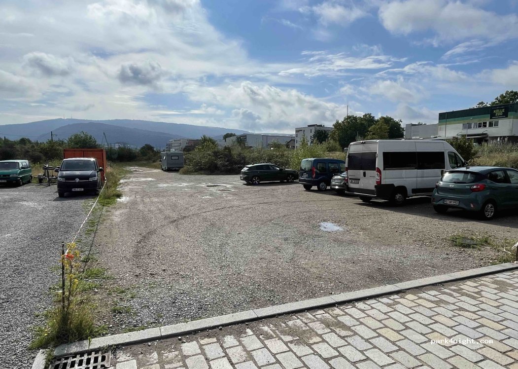 We were lucky to find a space but it's free. An easy flat walk into town or you can use the tram station across the road plus very good cycle paths. Supermarket and garage close by and a bakery in the Bauhaus store. Quiet at night. Stayed two nights on the 08/10/2022.
