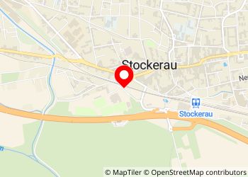 The parking space is at the stadium and there are additional parking spaces. Water withdrawal point 50m at the skater place, public toilet approx. 100m at the roundabout. A railway line runs right next to the SP. Nearby train station. City center within walking distance.