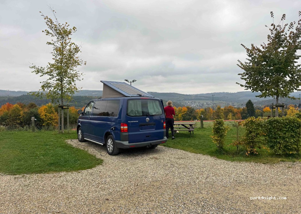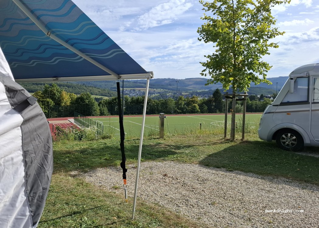 Toller kleiner Platz mit Blick auf Schmallenberg. Unter dem Platz ist ein Sportplatz. Heute war nichts los. Kann sein, dass es laut und hell bei Veranstaltungen ist. Würde uns aber nicht stören. Gute Ausgangslage für alle Sauerland-Aktivitäten. Wir kommen sicher wieder.