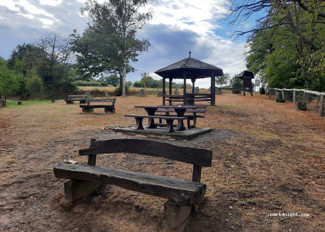 Ruhiger Wanderparkplatz für Autos Tag und Nacht, geteerte Fläche für ca. 5 Autos, sehr starkes Gefälle, nur mit Keilen komfortabel, grandiose Aussicht über das Rheintal mit Picknicktisch für's Frühstück. Nur geeignet für Camper (VW Bus)