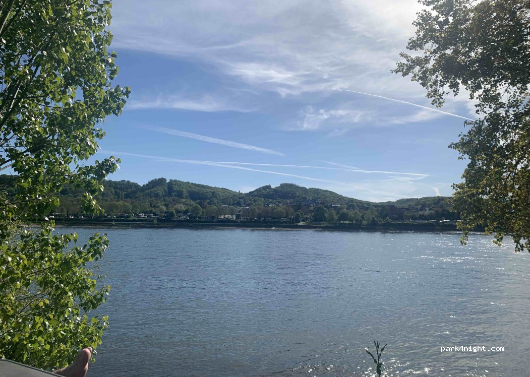 Wie immer am Fluss, hört man Schiffe, Autos und Züge ein wenig. Dafür ist man in der ersten Reihe.