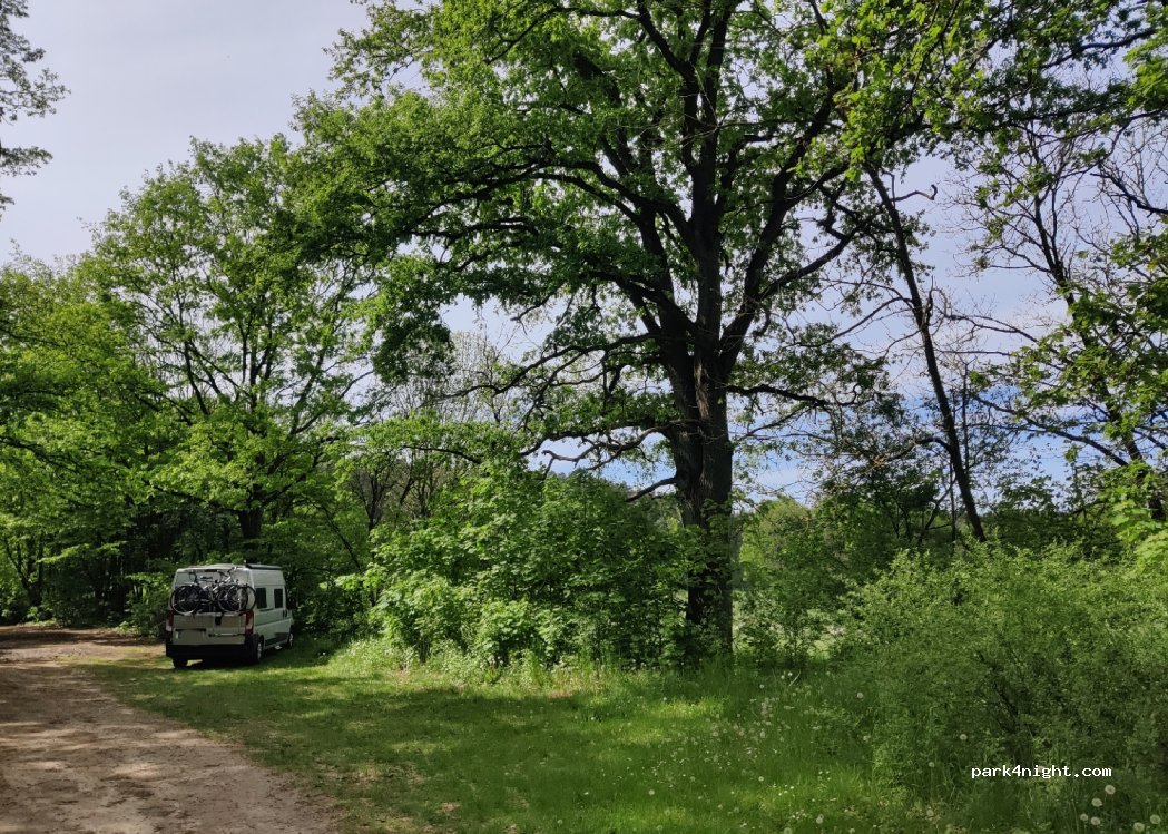 Schattiger Waldparkplatz mit direktem Zugang zum Müritz Nationalpark. Kaum flache Stellen, kein Netz. Tags Bewegung durch Erholungssuchende, nachts sehr ruhig. Wegetafel, Mülleimer. Guter Startpunkt für Wanderungen, Radtouren in die vielfältige Wald- und Seenlandschaft. Feuerstelle an kleiner Ruine oberhalb vom Parkplatz. -Leave no trace, except your footprints-