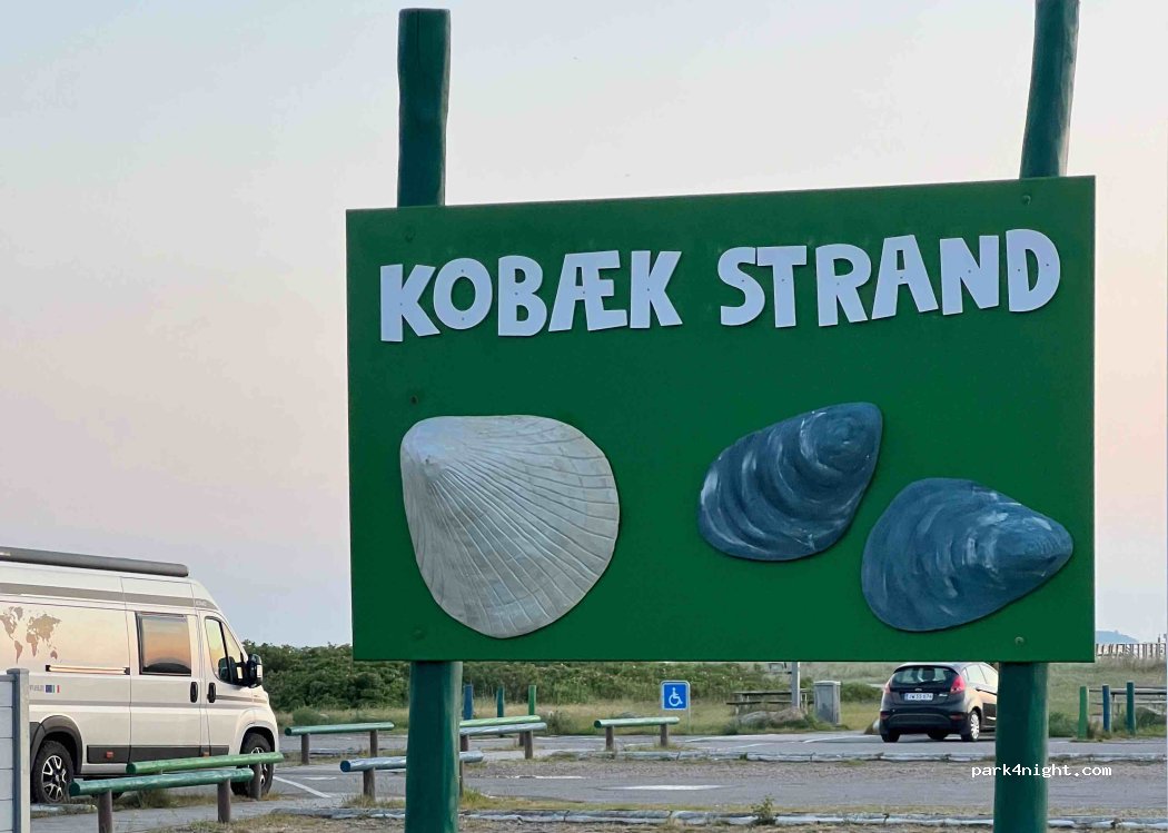Großer öffentlicher Strandparkplatz mit schöner Aussicht auf Storebælt und die große Brücke. Badebrücke und viele Picknicktische. Wir empfehlen einen Besuch im Restaurant Kobæk - gemütlich, gutes Essen und faire Preise.