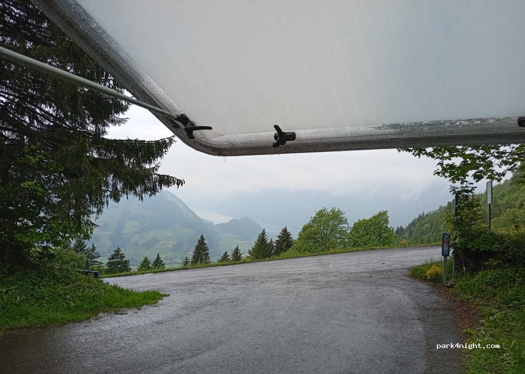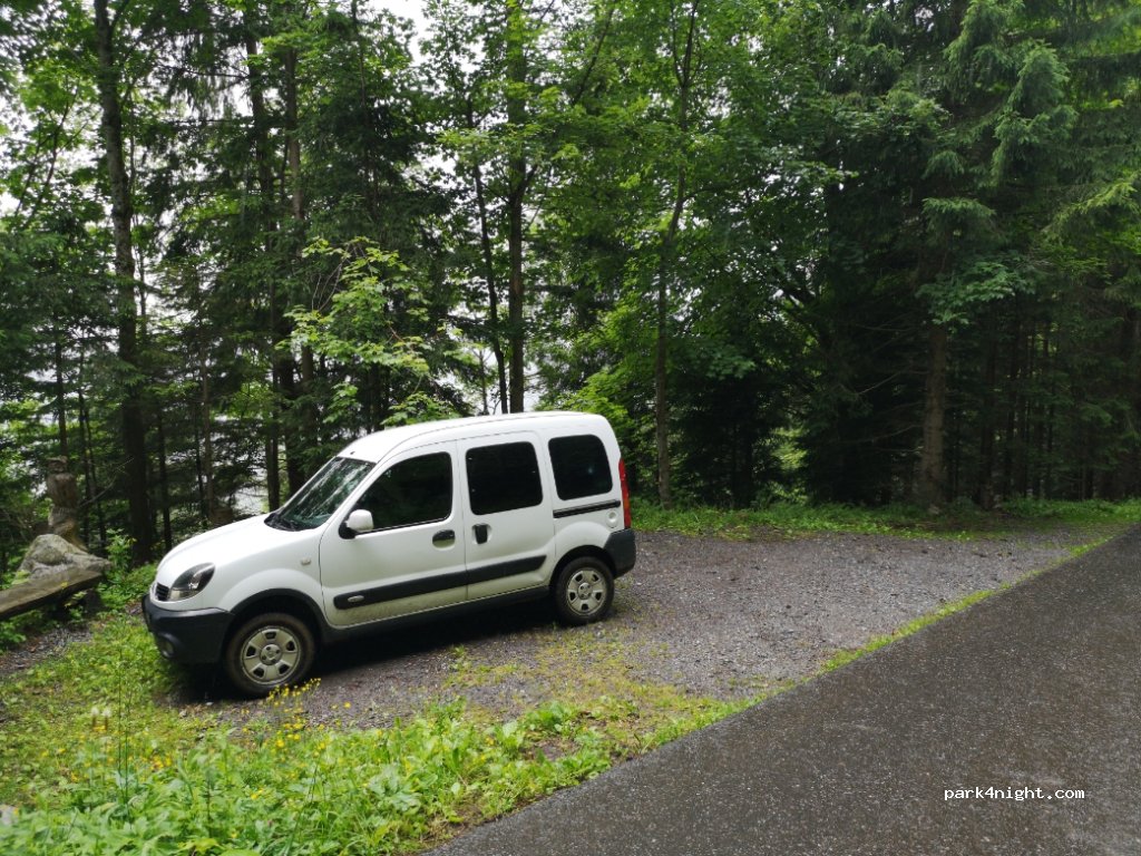 Etwas schräger Platz an kaum befahrener Strasse. Wunderschöne Aussicht. Sehr ruhig. Keine VE. Kein Mülleimer. Weiter oben sind noch 2 weitere Parkplätze, das Parkticket muss jedoch beim ersten Parkplatz gelöst werden.