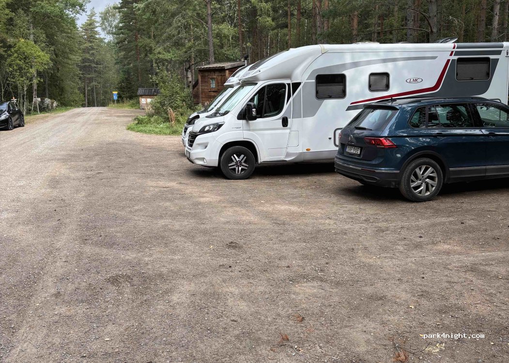 Parking de la réserve naturelle Trollegator. Avec grill, ordures. Très beau parc avec une grotte passionnante. Aucune interdiction de stationnement.
