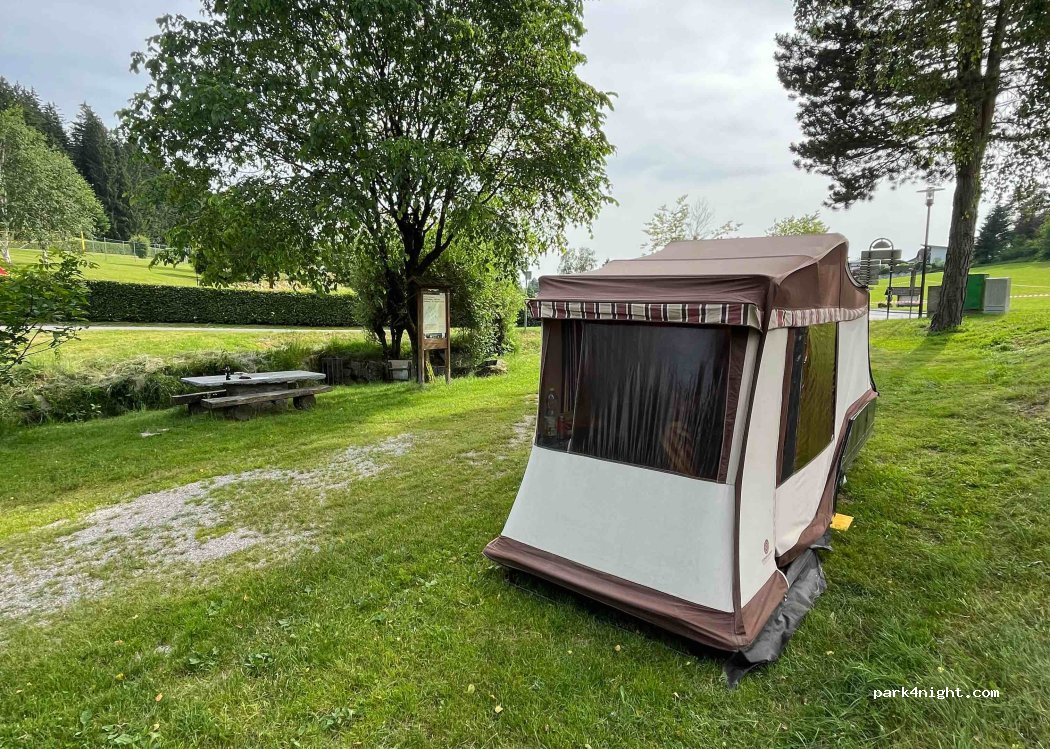 Platz, Klos und Duschen sehr sauber. Duschen kostenlos. Sehr netter Mann. Kleiner Platz mit vielen Dauercampern. Waldweg und Badesee fußläufig erreichbar. 18€ für 2 Erwachsene plus Camper. Hund, Kleinkind und Wasser auffüllen war kostenlos. Einziger Nachteil: Man steht sehr eng zusammen. Aber für eine Nacht hat uns das garnicht gestört. Wer nur 1 Tag bleibt, steht vor anderen Fahrzeugen in 2.Reihe