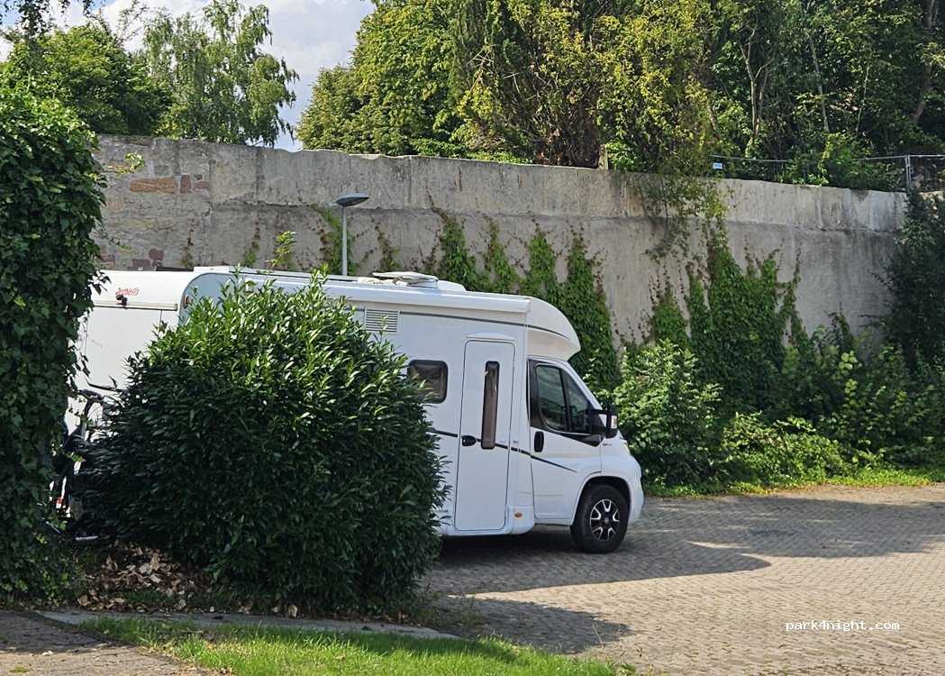 Parking at Schloss Friedrichstein The parking should only be used by smaller vans or camper vans, as the access road is not so wide. Therefore, absolutely unsuitable for trailers of any kind. There is a cafe on the grounds of the castle with a beautiful view of the old town of Bad Wildungen (see photo).