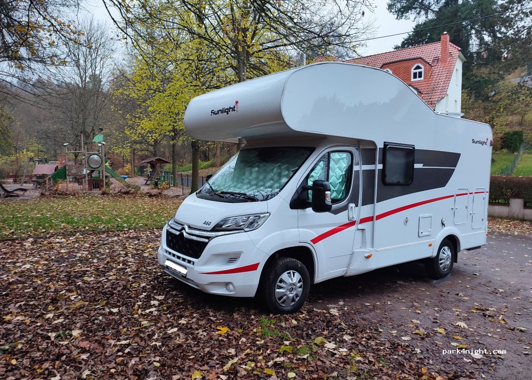 Abgelegener Stellplatz in praktischer Lage zur Wartburg und den Drachenfelsen. Wird morgens als Wendeplatz für Müllfahrzeuge genutzt. Für eine Nacht ok.